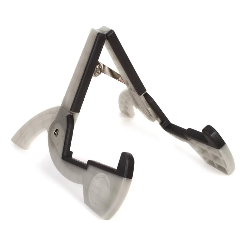 The Cooperstand Duro-Pro guitar stand combines the strength of acrylonitrile and styrene polymers with the toughness of polybutadiene rubber, by virtue of its first-run virgin ABS composite construction. This road-ready stand is flexible and moves with your instrument if it's bumped. It fits in your back pocket or guitar case with ease. The Cooperstand Duro-Pro guitar stand supports guitars up to 5" thick, basses up to 2-1/4" thick, ukuleles, mandolins, and more.