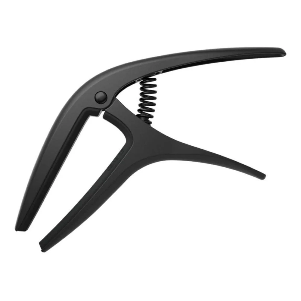 The Axis capo from Ernie Ball is designed to fit all of your guitars. This capo has a reversible design that can be used for flat and radiused fretboards alike. This feature ensures that the Axis capo provides secure and even contact with your fretboard, no matter the radius. Axis capo fits fretboard widths ranging from ukuleles to 7 string guitars. Beginner and experienced players will appreciate how easy it is to apply and reposition this capo with one hand. If you use your capo across multiple guitars, make sure to give the Ernie Ball Axis capo a try.