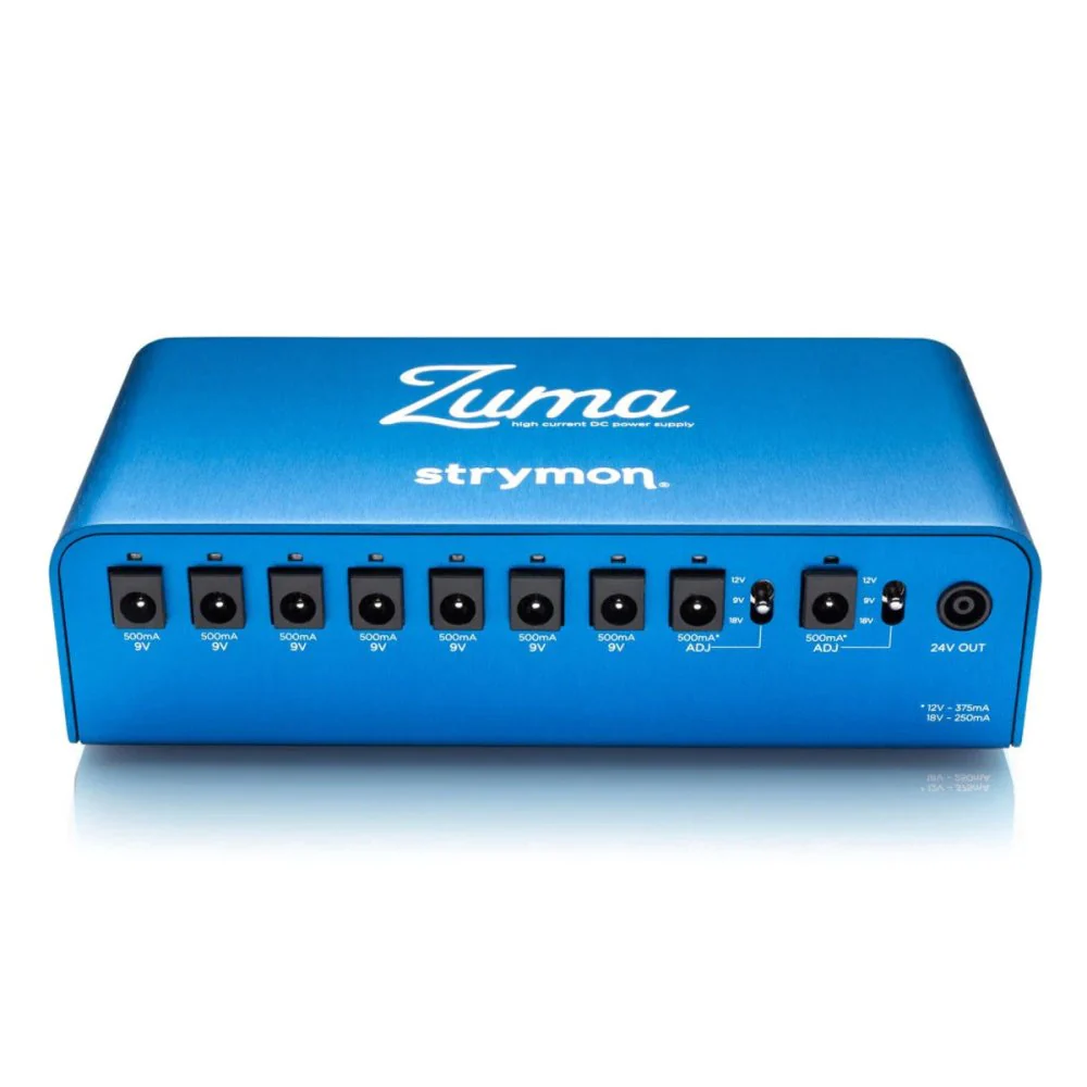 Built for a guitarist's needsThe Strymon Zuma is engineered from the ground up to handle the demands of today's gigging guitarists. Besides its impressive power abilities, the Zuma pedalboard power supply is built extremely rugged. It's anodised aluminum chassis will protect its circuitry for years to come whether mounted on top or underneath your board. And the Zuma boasts the ability to work perfectly with the various voltages around the world, making it one of a touring guitarist's most cherished pieces of equipment.