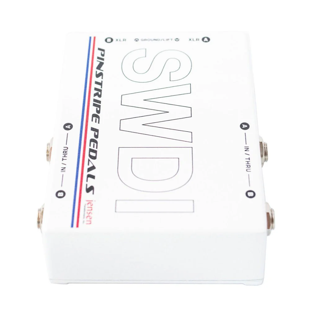 The SWDI is the first 2 channel direct box made specifically to be pedalboard friendly. Parallel In and Thru 1/4 inch jacks on either side for A channel and B channel. Send the signal into either side and out the other.